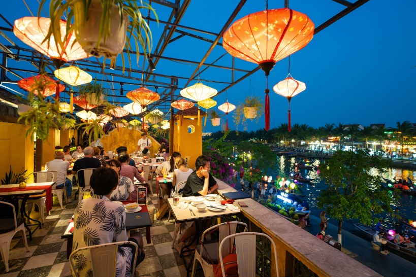 ディナーはホイアンでとりましょう。おすすめはトゥボン川を一望できるレストランの上階テラス席。川を遊覧するボートとランタン、そして町並みと旧市街の魅力をすべて望むことができます。